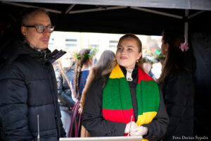 Per pilietinę sąšauką kartu su susirinkusiaisiais Lietuvos valstybės himną giedojo kretingiškė atlikėja Algimantė Kubilinskaitė.